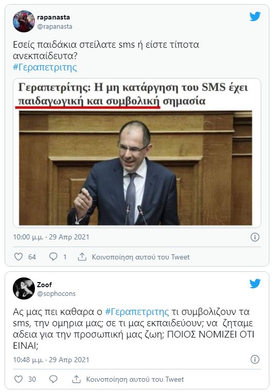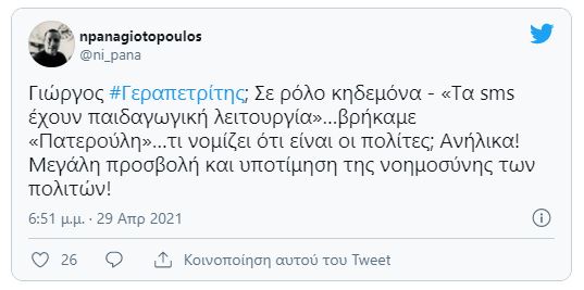 Γ. Γεραπετρίτης: Τα σχόλια για τη δήλωσή του στο Twitter