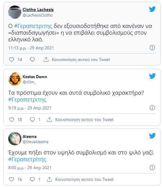 Το όνομά του, μέχρι και το πρωί της Μεγάλης Παρασκευής ήταν πρώτο trend στο Twitter δεχόμενος σκληρή κριτική από τους χρήστες του για την δήλωσή του αυτή, όπως μπορείτε να δείτε και με τις παρακάτω αναρτήσεις…