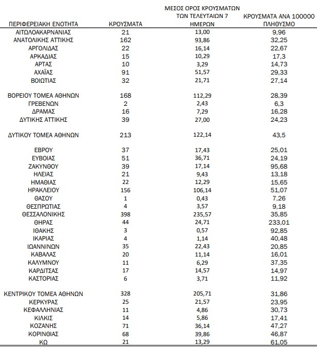 Από τις 3.593 καινούργιες μολύνσεις, οι 884 καταγράφονται στην Αθήνα και κατανέμονται ως εξής: