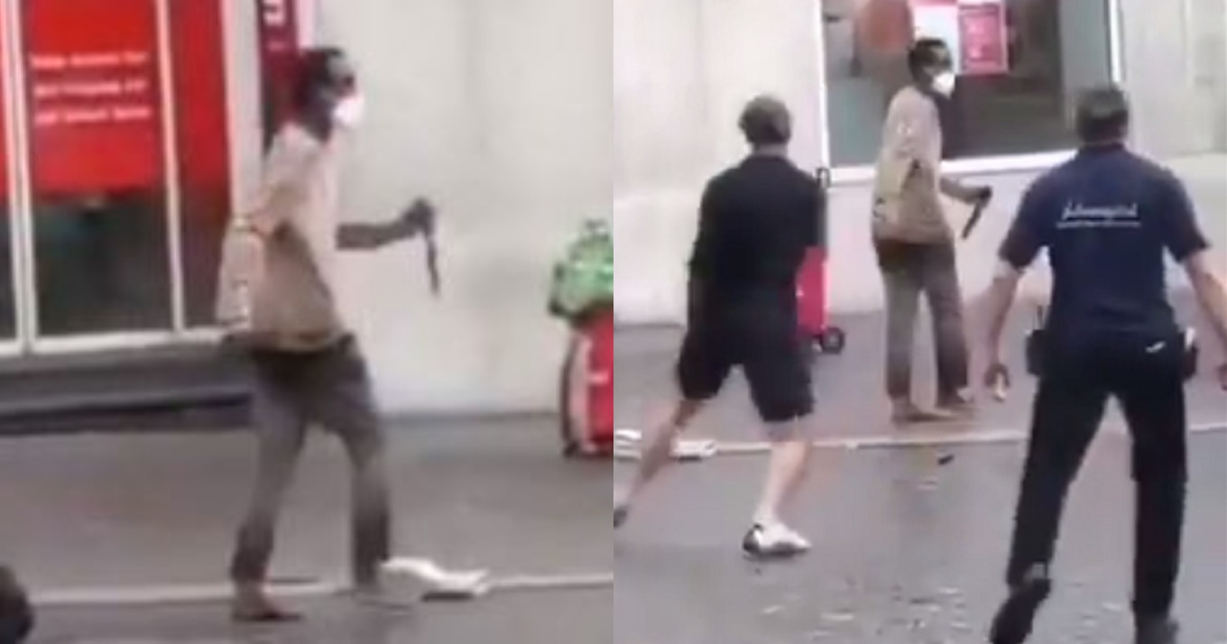 BREAKING VIDEO: 2 people dead and multiple injured in stabbing attack at Barbarossaplatz in Wuerzburg, Germany. A man with a knife can be seen attacking people in the video: