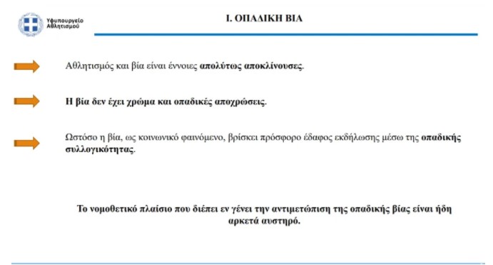 Τέταρτον, αναβαθμίζεται η αντιμετώπιση της οπαδικής βίας. Επικεφαλής ανώτατος αξιωματικός ο εκάστοτε υπαρχηγός της ΕΛΑΣ».