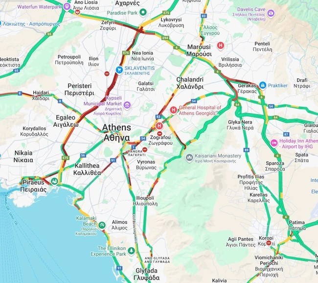 Κίνηση καταγράφεται επίσης στις Λεωφόρους Κηφισίας, Μεσογείων και Βουλιαγμένης.