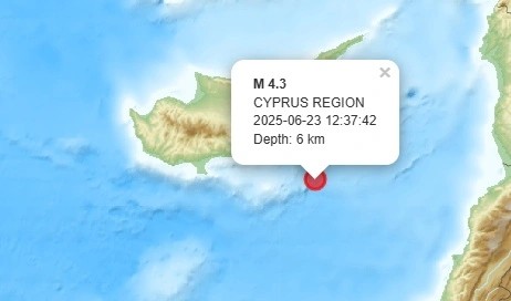 Ο σεισμός είχε εστιακό βάθος 6 χιλιομέτρων και έγινε 100 χιλιόμετρα νοτιοανατολικά της Λευκωσίας.