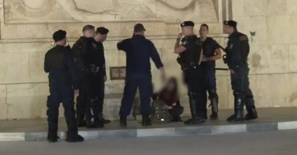 Σύμφωνα με πληροφορίες, αστυνομικοί που βρίσκονταν στο σημείο την πλησίασαν και της ζήτησαν να απομακρυνθεί, υπενθυμίζοντας ότι ο χώρος είναι ιερός και διαρκώς φυλασσόμενος. Παρά το αρχικό της βήμα να αποχωρήσει, η κοπέλα επέστρεψε λίγα δευτερόλεπτα αργότερα και κάθισε ξανά οκλαδόν πάνω στο κενοτάφιο. Η επιμονή της οδήγησε τους αστυνομικούς να προχωρήσουν στην προσαγωγή της για περαιτέρω εξακρίβωση στοιχείων.