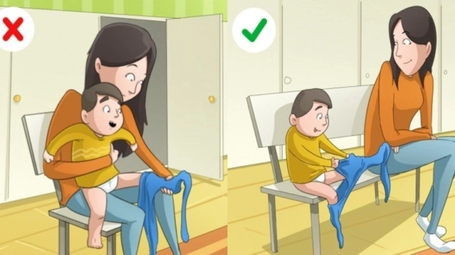 Τα παιδιά ηλικίας 2-3 ετών, μπορούν μόνα τους να βάλουν και να βγάλουν διάφορα ρούχα και να τα τοποθετήσουν στο πλυντήριο. Επιπλέον, σε αυτή την ηλικία θέλουν να κάνουν πράγματα μόνα τους.