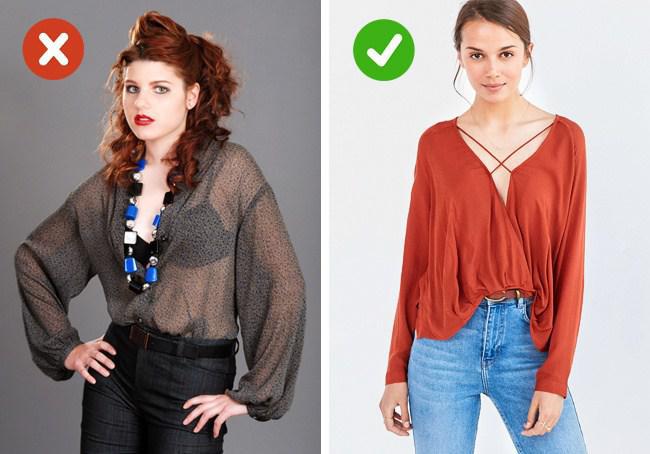 9. Πείτε κατηγορηματικά “όχι” σε ρούχα που έχουν μεγάλες διαφάνειες. Τα εσώρουχα και οι τιράντες δεν πρέπει να είναι σε κοινή θέα.