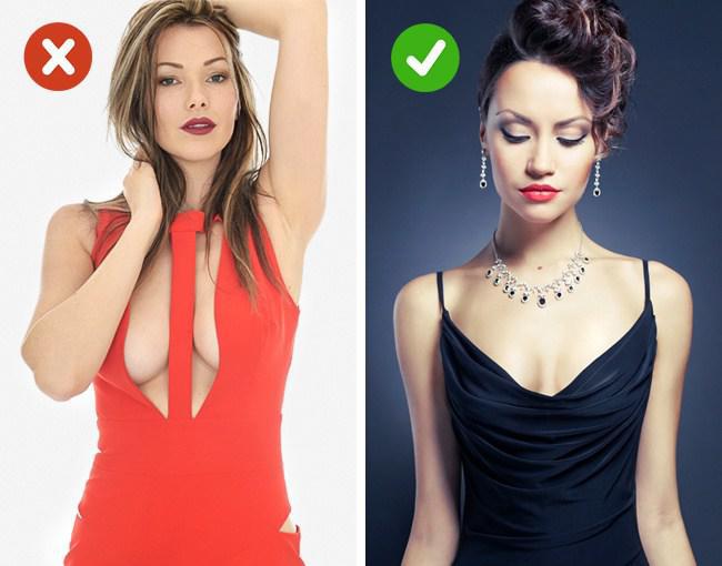 - “Όχι” στα αβυσσαλέα ντεκολτέ. Το αποτέλεσμα δείχνει τουλάχιστον φθηνό.