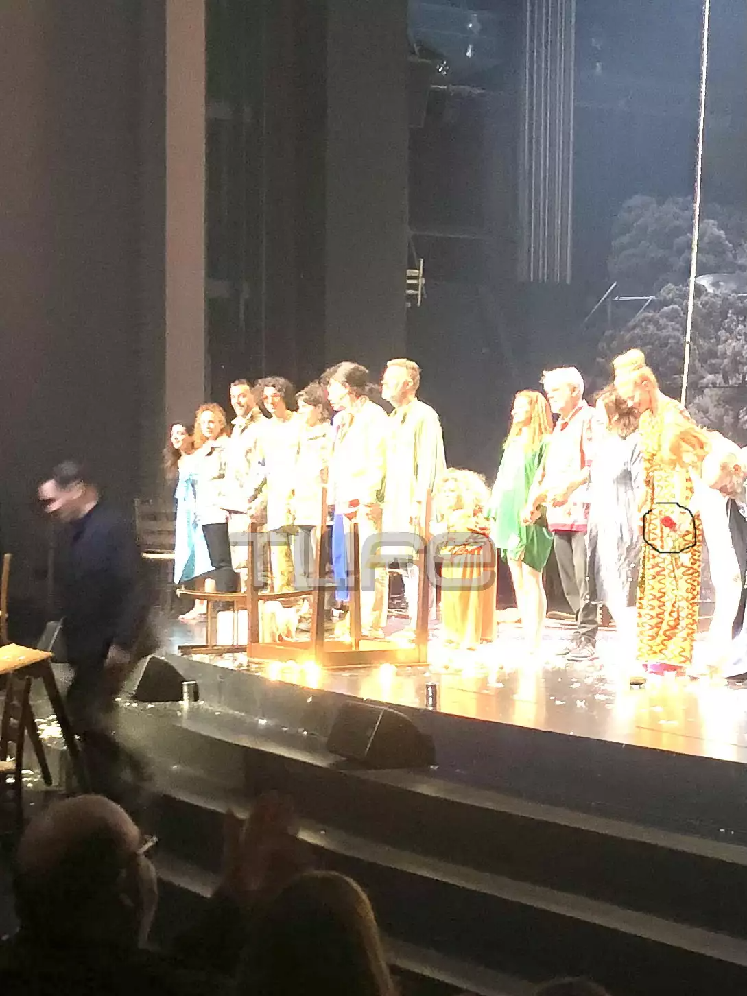 Στο τέλος μάλιστα της παράστασης και συγκεκριμένα τη στιγμή της υπόκλισης, ο Μιχάλης Χατζηγιάννης σηκώθηκε από τη θέση του και ανέβηκε στη σκηνή, προσφέροντας ένα κόκκινο τριαντάφυλλο στη Ζέτα Μακρυπούλια, που το δέχτηκε με μεγάλη χαρά.