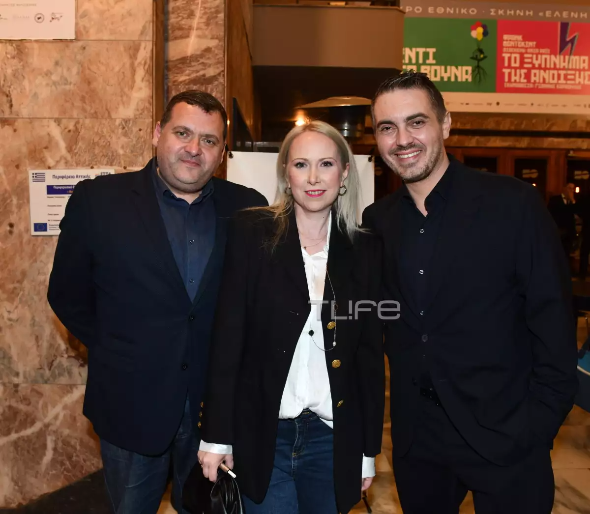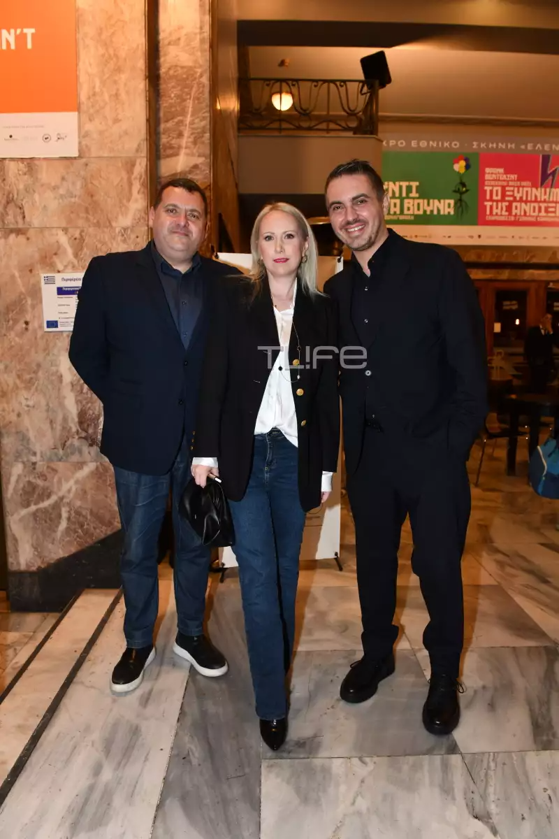 Οι τρεις τους αρχικά συνομίλησαν για λίγα λεπτά έξω από τον χώρο του θεάτρου και ακολούθως κατευθύνθηκαν στην αίθουσα και παρακολούθησαν την παράσταση με μεγάλο ενδιαφέρον, από την πρώτη σειρά.