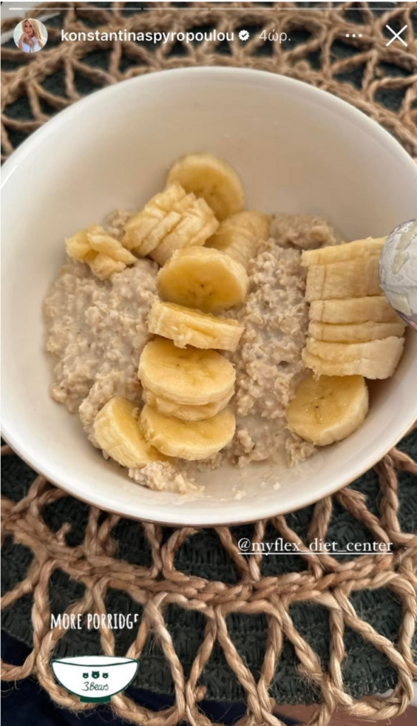 Μάλιστα η Κωνσταντίνα Σπυροπούλου μιας και είναι αρκετά ενεργή στα social media έχει μοιραστεί με τους διαδικτυακούς της φίλους, μερικά από τα γεύματα που επιλέγει στην καθημερινότητά της.