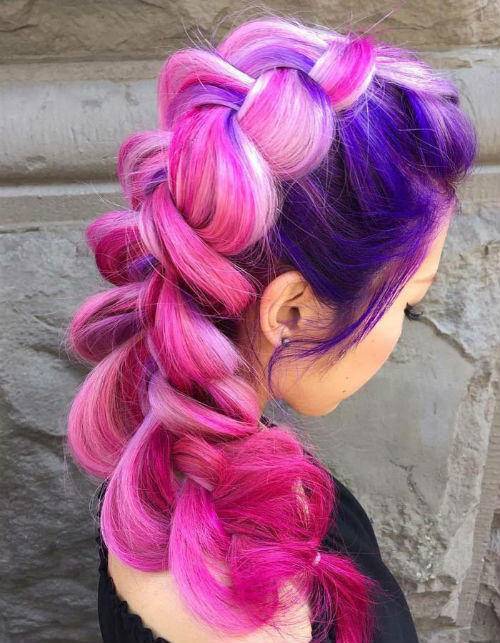8. Διπλή πλεξούδα στο πίσω μέρος του κεφαλιού σε ροζ μακριά σπαστά μαλλιά