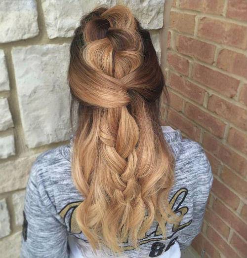3. Μακριά μαλλιά με όγκο στην κορυφή και γαλλική πλεξούδα