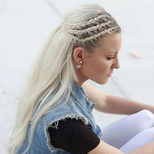 Ταιριάζει τόσο σε ίσια ίσια όσο και σε σπαστά μαλλιά. Θα κρεπάρετε την κορυφή των μαλλιών σας και στη συνέχεια θα πλέξετε ένα στεφάνι με μια κοτσίδα γαλλική από κάθε πλευρά τις οποίες θα πιάσετε από το ένα αυτί μέχρι το άλλο στο πίσω μέρος του κεφαλιού σας.