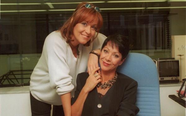 Η ξανθιά και γοητευτική κυρία δίπλα στην Ελένη Μενεγάκη είναι η μητέρα της Νατάσσας Θεοδωρίδου, σε επίσκεψη τους σε κέντρο στη Θεσσαλονίκη, όπου τραγουδούσε πέρυσι η Νατάσσα.