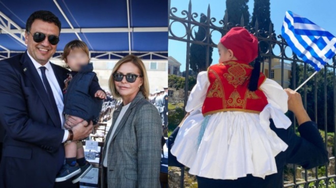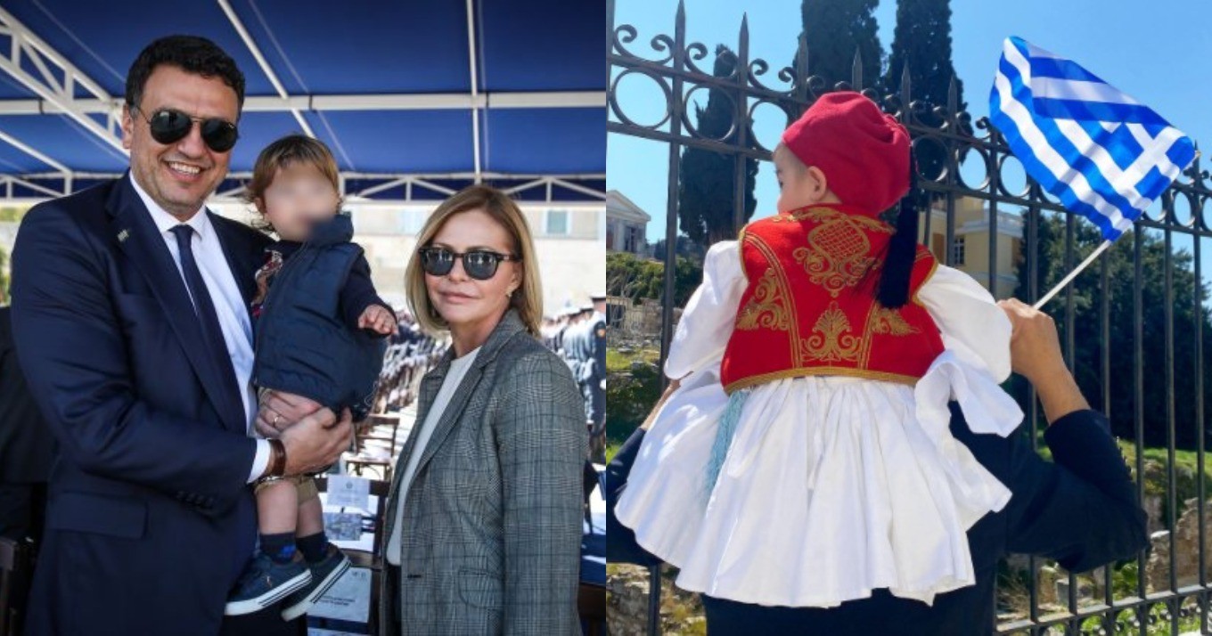 Στο Σύνταγμα στην στρατιωτική παρέλαση με τον γιο τους, Παναγιώτη – Αντώνιο, βρέθηκαν ο υπουργός Βασίλης Κικίλιας και η Τζένη Μπαλατσινού.
