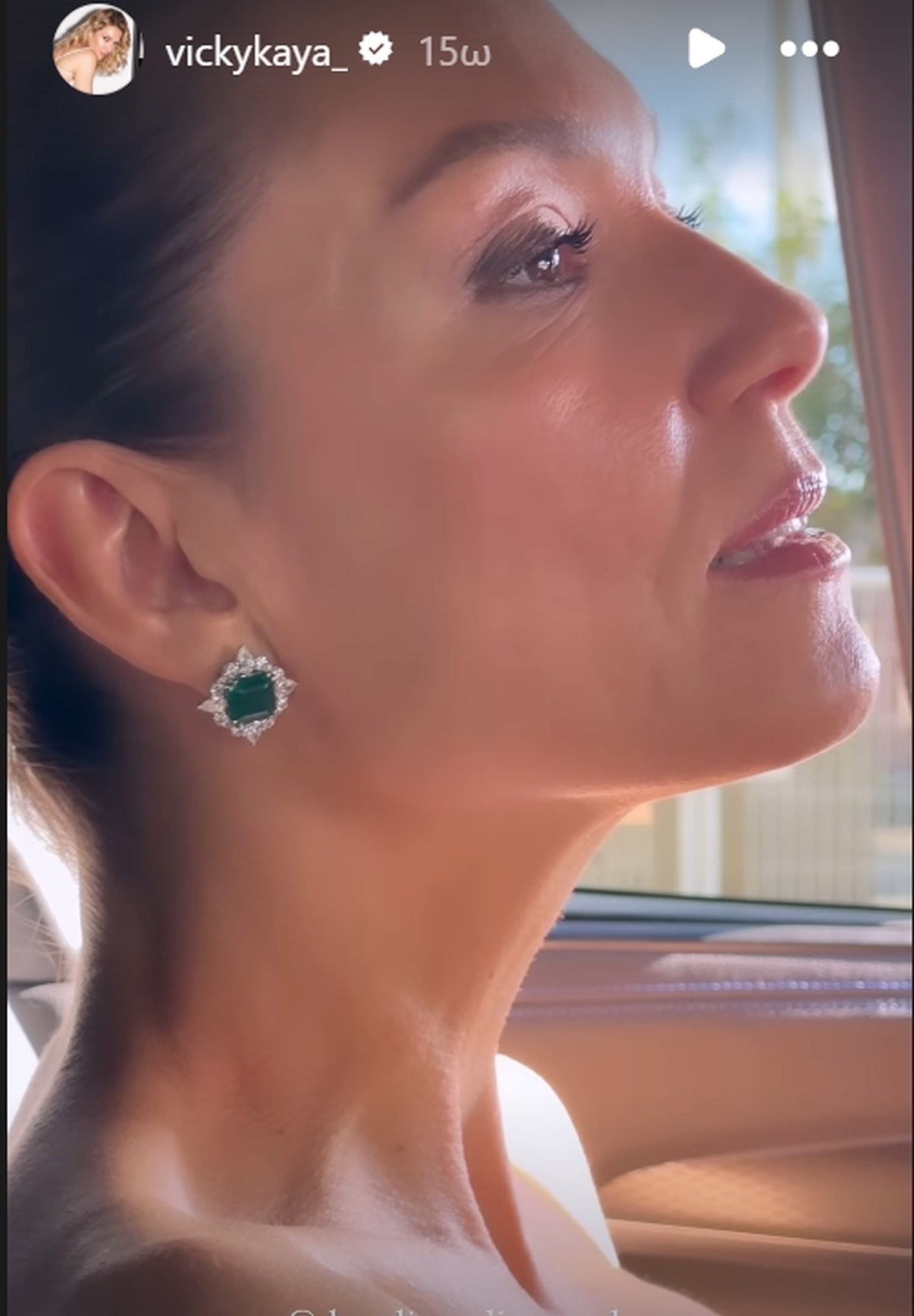 Ακόμα, η Βίκυ Καγιά μας έδειξε το μακιγιάζ της που ήταν λαμπερό και χωρίς υπερβολές. Ακόμα φόρεσε εντυπωσιακά διαμαντένια κοσμήματα.
