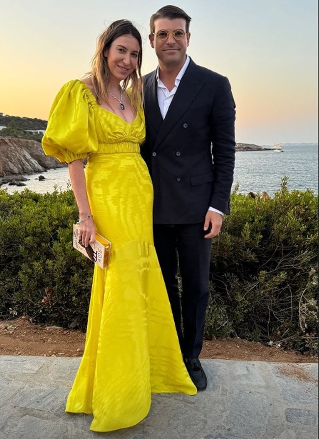 Η Εμπειρίκου φόρεσε ένα υπέροχο κίτρινο φόρεμα με φουσκωτα μανίκια και κράτησε την τσάντα που υπογράφει η Μαρία Ολυμπία.
