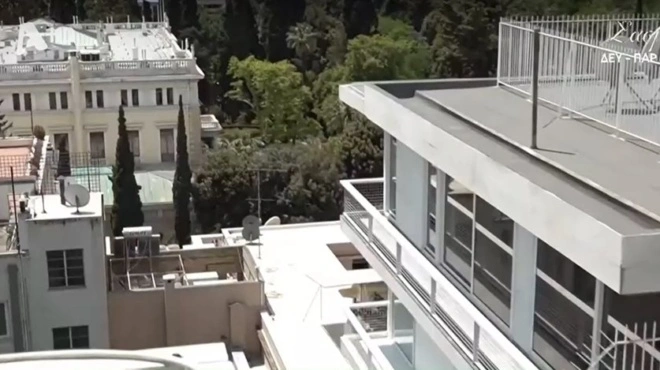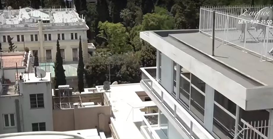 Το διαμέρισμα περιλαμβάνει και το ρετιρέ του κτηρίου, που χτίστηκε το 1956 από τον αρχιτέκτονα Τάκη Ζενέτο, ενώ η συνολική του επιφάνεια αγγίζει τα 320 τετραγωνικά μέτρα. Ακριβώς δίπλα βρίσκεται το Μέγαρο Μαξίμου και το Προεδρικό Μέγαρο, ενώ από το μπαλκόνι του συγκεκριμένου διαμερίσματος μπορεί κανείς να απολαύσει το Καλλιμάρμαρο, τον Λυκαβηττό και τον Σαρωνικό Κόλπο.