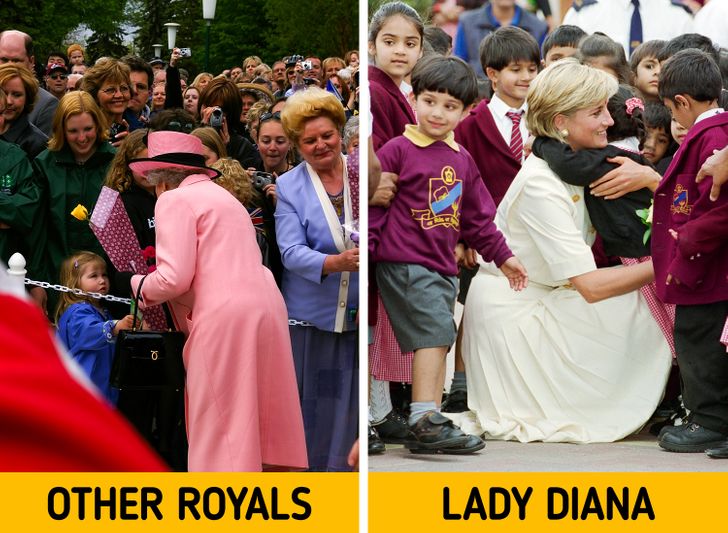 Η πριγκίπισσα Νταiάνα είχε τεράστια αγάπη προς τα παιδιά, και κατάφερνε όχι μόνο να τους την δείξε, αλλά και να την νιώσουν. Μία από τις συνηθισμένες πρακτικές της ήταν να σκύψει κάτω για να είναι στο ίδιο επίπεδο με τα παιδιά στα οποία μιλούσε, όχι μόνο τα δικά της παιδιά, αλλά επίσης και στα παιδία τα οποία συναντούσε. Αυτή ήταν η πρώτη που παρατηρήθηκε μεταξύ των βασιλέων, και τώρα τα παιδιά την τιμάνε εφαρμόζοντας την ίδια πρακτική.