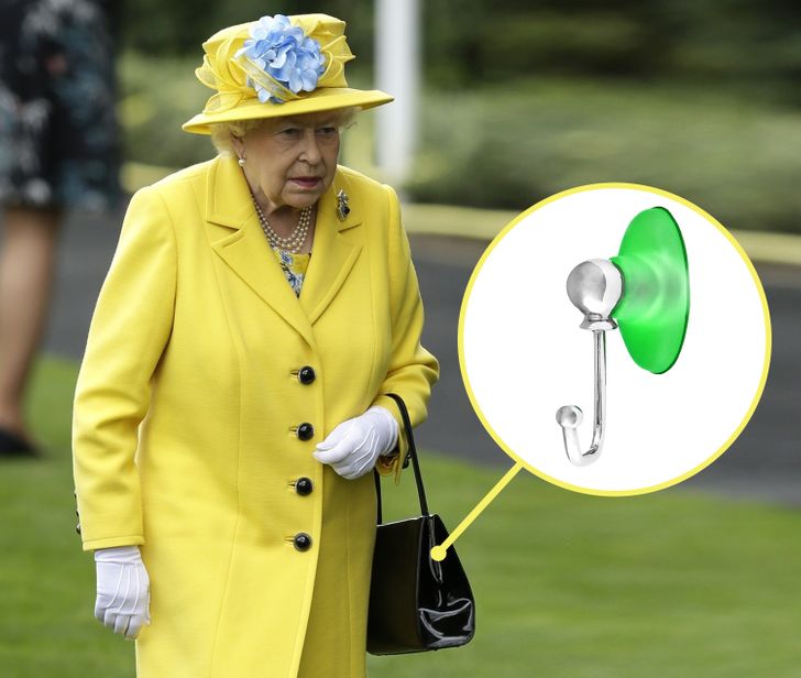Αποδεικνύεται ότι η βασίλισσα τοποθετεί αυτό το πιαστράκι κάτω από τραπέζια για να κρεμάσει την τσάντα της. Αυτό είναι σημαντικό γιατί στέλνει σήματα στους υπηρέτες της με την τσάντα της. Για παράδειγμα, εάν η τσάντα είναι στο πάτωμα, είναι ένδειξη ότι η βασίλισσα Ελισάβετ Β ‘θέλει να φύγει. Αλλά η τσάντα κρέμεται στο πιαστράκι δεν σημαίνει τίποτα, η βασίλισσα αισθάνεται πιο άνετα με αυτόν τον τρόπο.