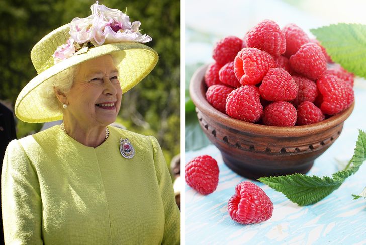 Τα σμέουρα είναι ένα από τα αγαπημένα μούρα της βασίλισσας, αλλά δεν τα τρώει μπροστά σε άλλους, επειδή οι σπόροι τους μπορεί να κολλήσουν στα δόντια, κάτι που είναι απαράδεκτο. Τα βατόμουρα απαγορεύονται επίσης σε επίσημες δεξιώσεις ενώ στα αγγούρια και τις ντομάτες όλοι οι σπόροι αφαιρούνται εκ των προτέρων.