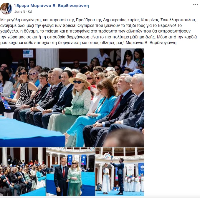 Την επόμενη ημέρα, στις 7 Ιουνίου η Μαριάννα Βαρδινογιάννη έδωσε το παρόν μαζί με την Πρόεδρο της Δημοκρατίας, στην τελετή αφής της φλόγας για τους αγώνες Special Olympics Βερολίνο 2023 επίσης στο Ζαππειο και στη συνέχεια δεν εμφανίστηκε ξανά δημόσια, καθώς η υγεία της είχε επιβαρυνθεί.
