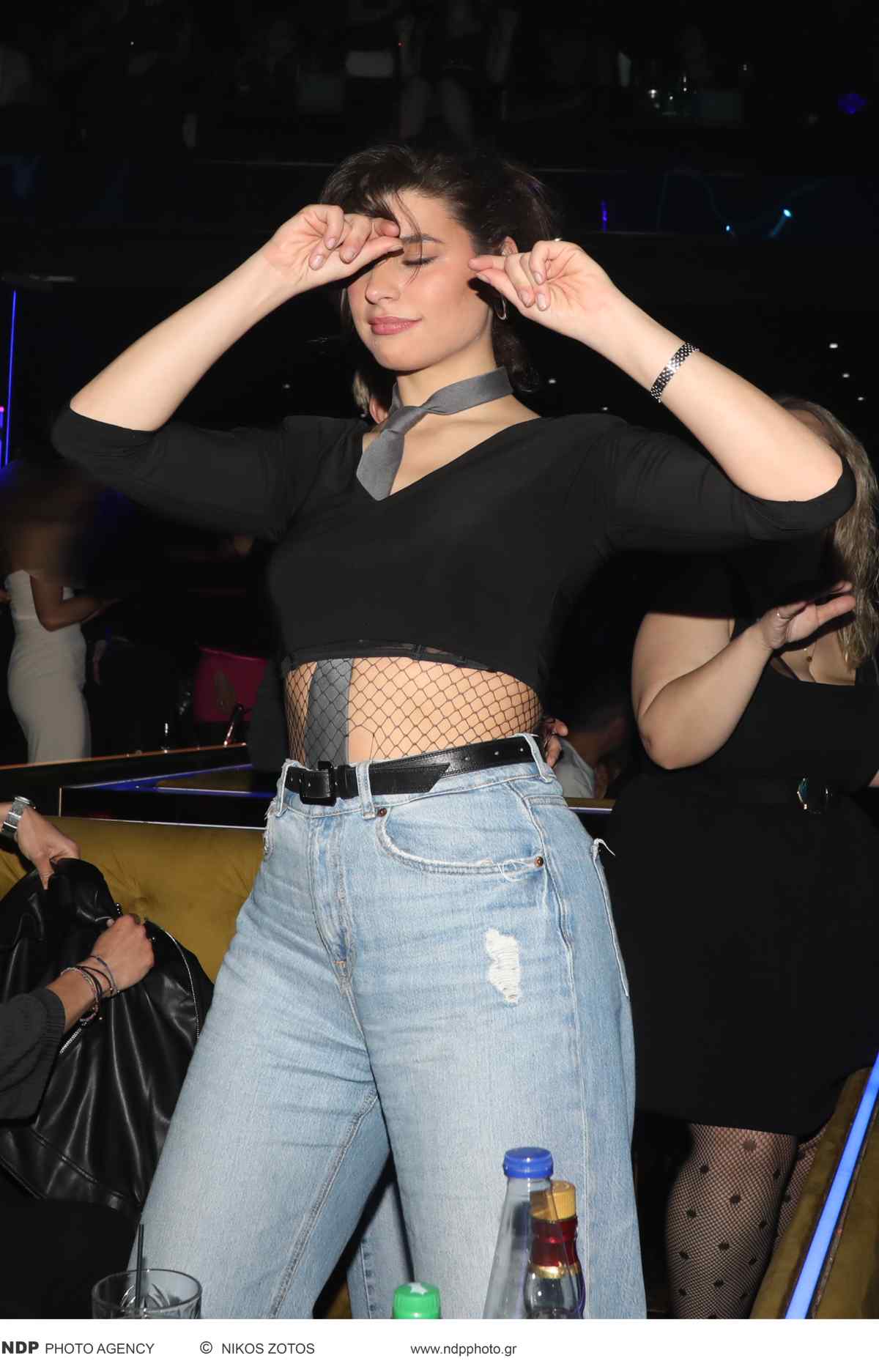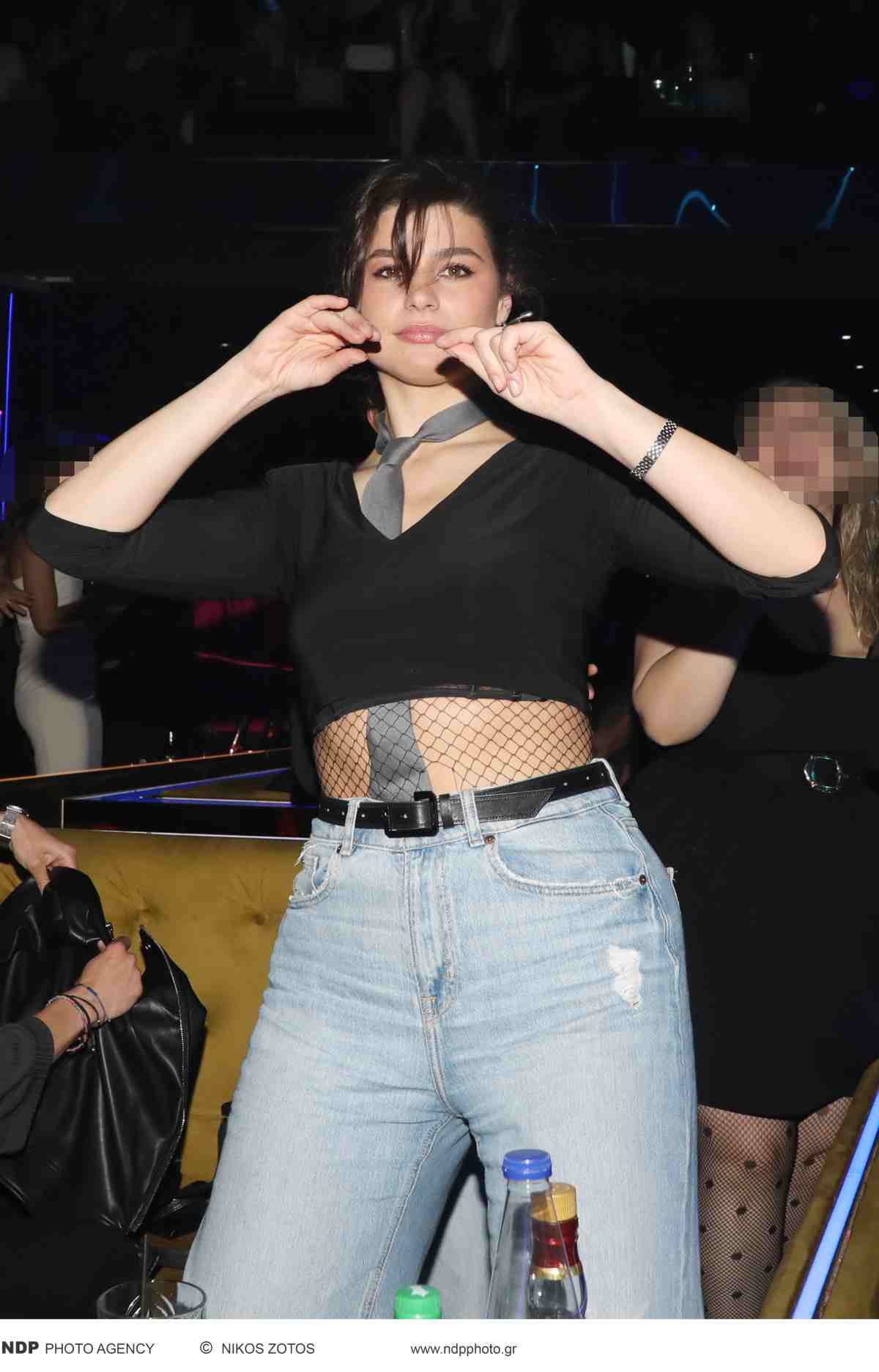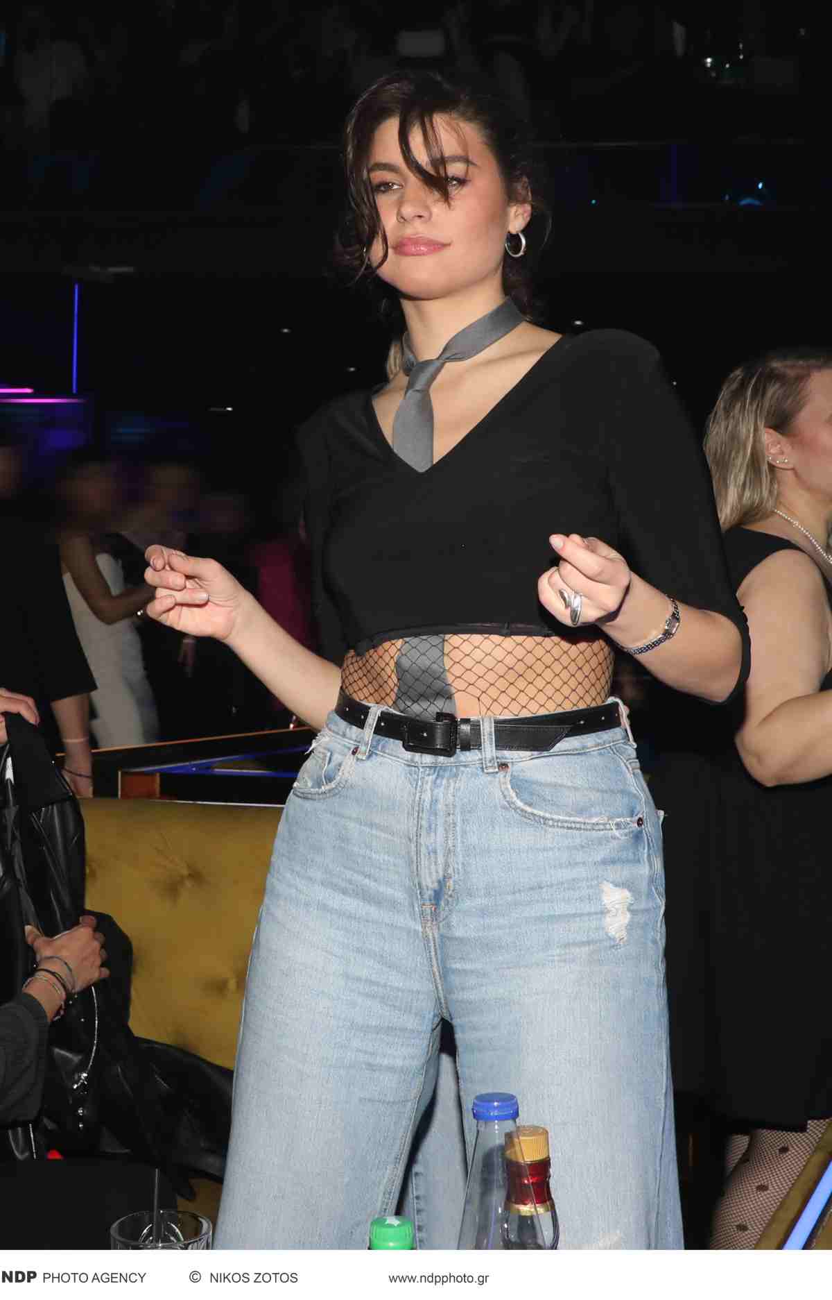 Η ίδια όπως θα δείτε από τις φωτογραφίες που εξασφάλισε το Youweekly.gr, επέλεξε για τη βραδινή της έξοδο να φορέσει ένα φαρδύ τζιν με σκισίματα, ενώ το συνδύασε φορώντας μια γκρι γραβάτα μέσα από ένα crop τοπάκι μαύρο με δίχτυ, δημιουργώντας ένα απόλυτα sexy look!