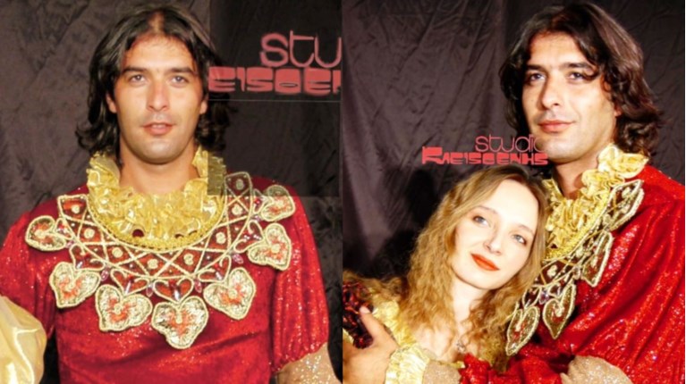 Ντυμένος πρίγκιπας, με μακρύ μαλλί και χωρίς γένια, φαίνεται εντελώς αγνώριστος στην παιδική παράσταση “Η Πεντάμορφη και το Τέρας” η οποία ανέβηκε το 2005 στο “Θέατρο Γκλόρια”.