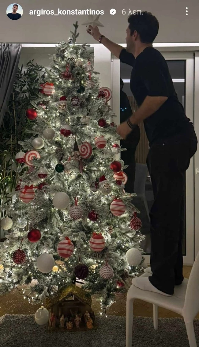 Εν όψει της γέννησης του γιου τους και των γιορτών, το ζευγάρι ετοίμασε τον χριστουγεννιάτικο στολισμό του σπιτιού του. Σε μία φωτογραφία που ανέβασε ο τραγουδιστής στο Instagram, φαίνεται να τοποθετεί το αστέρι στην κορυφή ενός εντυπωσιακού, πανύψηλου δέντρου, στολισμένου με λευκές και κόκκινες μπάλες. Αυτή η εικόνα αναδεικνύει τη ζεστασιά και την οικογενειακή ατμόσφαιρα που επικρατεί στο σπίτι τους.