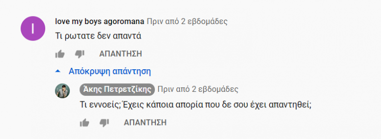 *Διευκρίνιση: Μία απάντηση δεν ήταν δική του αλλά άσχετου χρήστη (ονόματι Savvas Kav) και αντικαταστάθηκε. Η αληθινή ήταν αυτή: