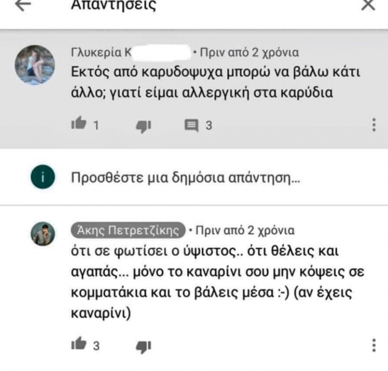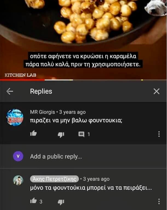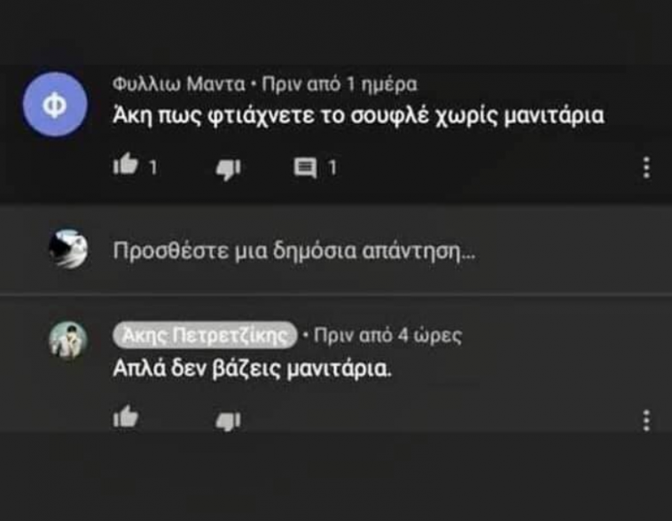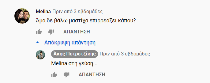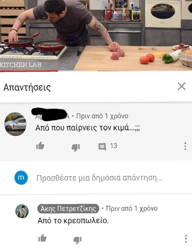 Ο Άκης έχει ένα κανάλι στο YouTube, στο οποίο δημοσιεύει τις συνταγές του. Κάτω από τα βίντεο, αναμενόμενα, οι χρήστες κάνουν τα σχόλιά τους. Και μπορεί να μην το περίμενες αλλά ο σεφ απαντάει συχνά σε αυτά.