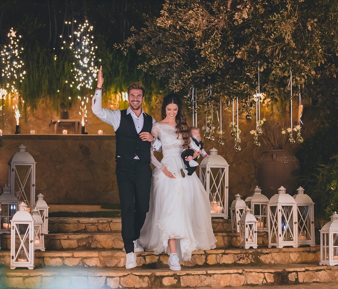 Τις φωτογραφίες συνόδευσε με τη λεζάντα «27/9/2021. Η μέρα του γάμου μας με την Κωνσταντίνα και η βάφτιση του Αχιλλεάκου μας! Δεν πίστευα ποτέ πως θα νιώσω τόση ευτυχία! Το πώς περάσαμε δεν περιγράφεται εύκολα με λόγια αλλά νομίζω πως μπορείτε να το καταλάβετε από τις φωτογραφίες! Σας ευχαριστώ μέσα από την καρδιά μου για τις ευχές!».