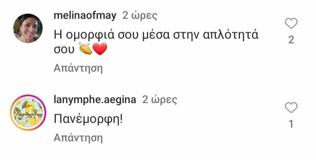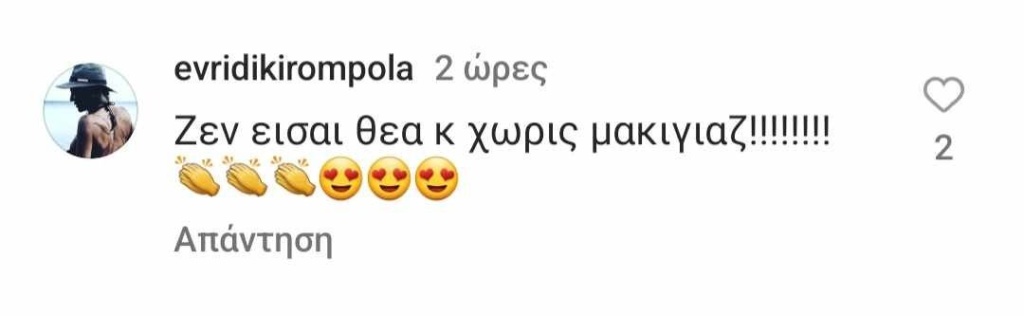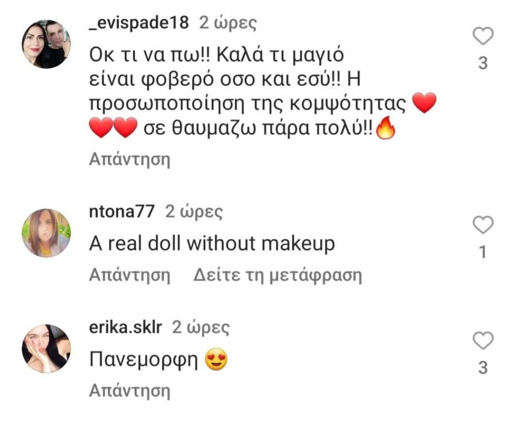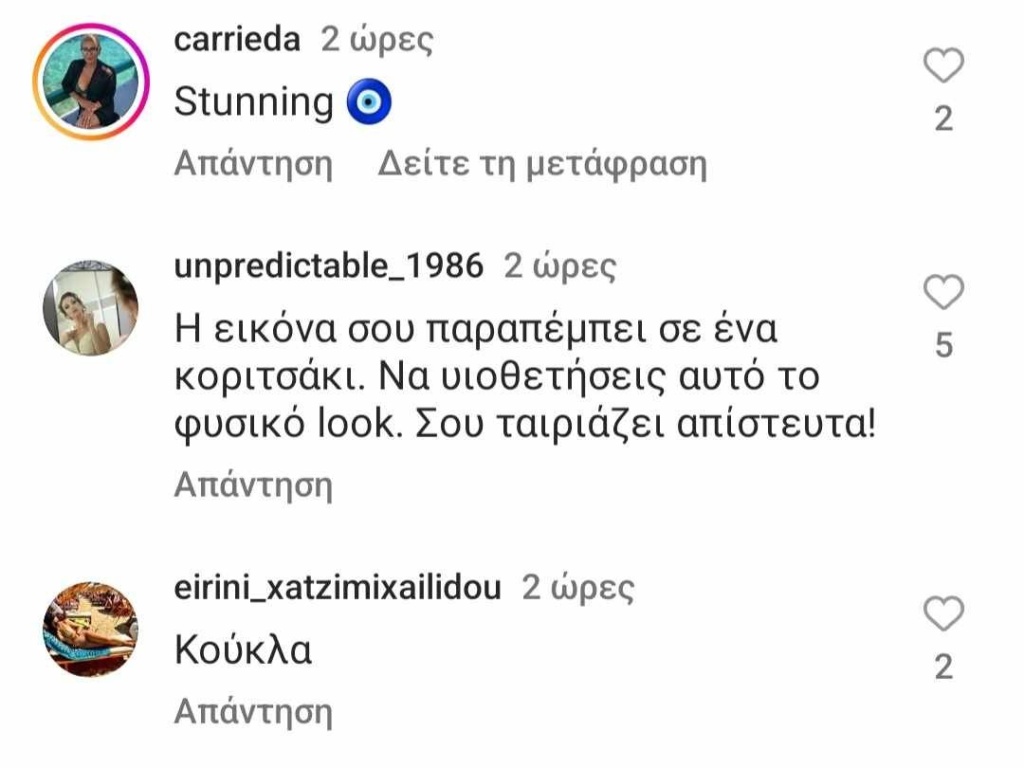 Οι followers της σχολίασαν το πόσο εντυπωσιακή και κομψή έδειχνε σε αυτή την φωτογραφία ενώ πρόσθεσαν στα σχόλιά τους πως φυσική, χωρίς ίχνος μακιγιάζ είναι ακόμα πιο όμορφη.