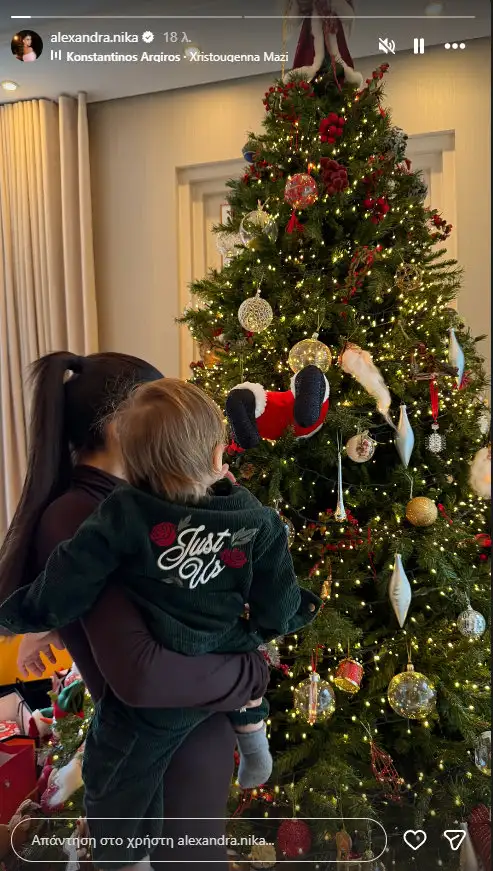 Στις νέες της αναρτήσεις στο instagram η Αλεξάνδρα Νίκα μοιράστηκε φωτογραφία αγκαλιά με τον γιο της μπροστά από το χριστουγεννιάτικο δέντρο, αλλά και ένα δεύτερο στιγμιότυπο με την πρωτοχρονιάτικη πίτα.