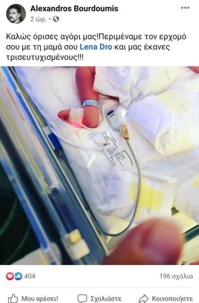 «Καλώς όρισες αγόρι μας! Περιμέναμε τον ερχομό σου μαζί με τη μαμά σου κι ήρθες και μας έκανες τρισευτυχισμένους!» σημείωσε χαρακτηριστικά ο Αλέξανδρος Μπουρδούμης στον προσωπικό του λογαριασμό στο Instagram.