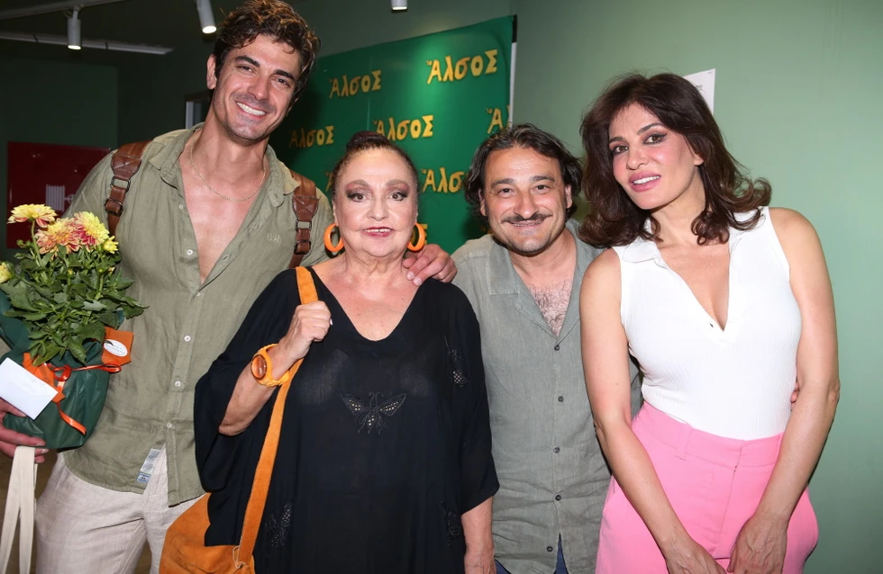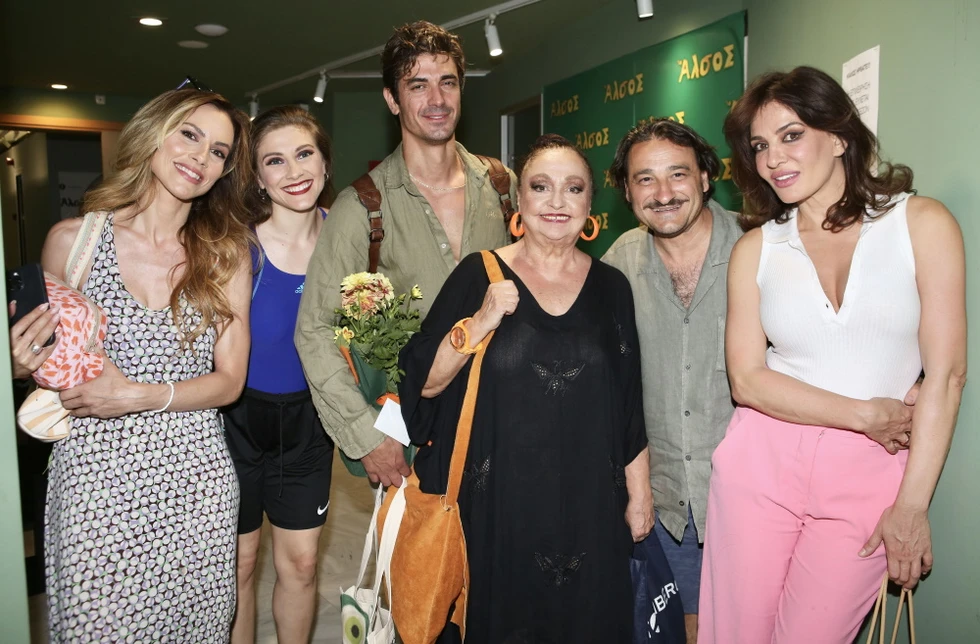 Ειδικότερα, ο Πέτρος Κόκκαλης καμάρωσε επί σκηνής τη σύζυγό του και στη συνέχεια φωτογραφήθηκε με τους υπόλοιπους ηθοποιούς, ενώ και η μητέρα της ηθοποιού, Ελένη Ματσούκα, φωτογραφήθηκε με την κόρη και τον γαμπρό της.
