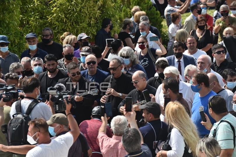 Ο μαέστρος του και το “πρώτο μπουζούκι” του Τόλη Βοσκόπουλου για πάνω από 22 χρόνια, ο Μανώλης Καραντίνης, ήταν από τους πρώτους που έφτασαν στο Α’ Νεκροταφείο για να τον αποχαιρετήσουν και πρώτος που τον «συνόδευσε» μαζί με τον γιο του υπό τους ήχους του μπουζουκιού.