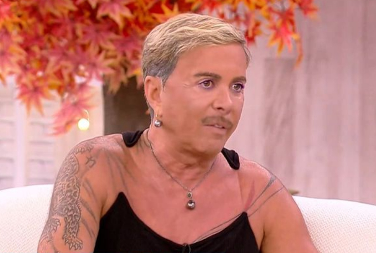 Ο διάσημος σχεδιαστής ρούχων κάνει, γενικότερα, εκκεντρικές εμφανίσεις, αλλά αυτή τη φορά ξάφνιασε την παρουσιάστρια, αφού επέλεξε να φορέσει μία ολόσωμη φόρμα με ψεύτικους κοιλιακούς και ζεβρέ print στα μανίκια και στα μπατζάκια παντελόνι. Μάλιστα, μόλις στάθηκε δίπλα της, άρχισε να κάνει κοιλιακούς.