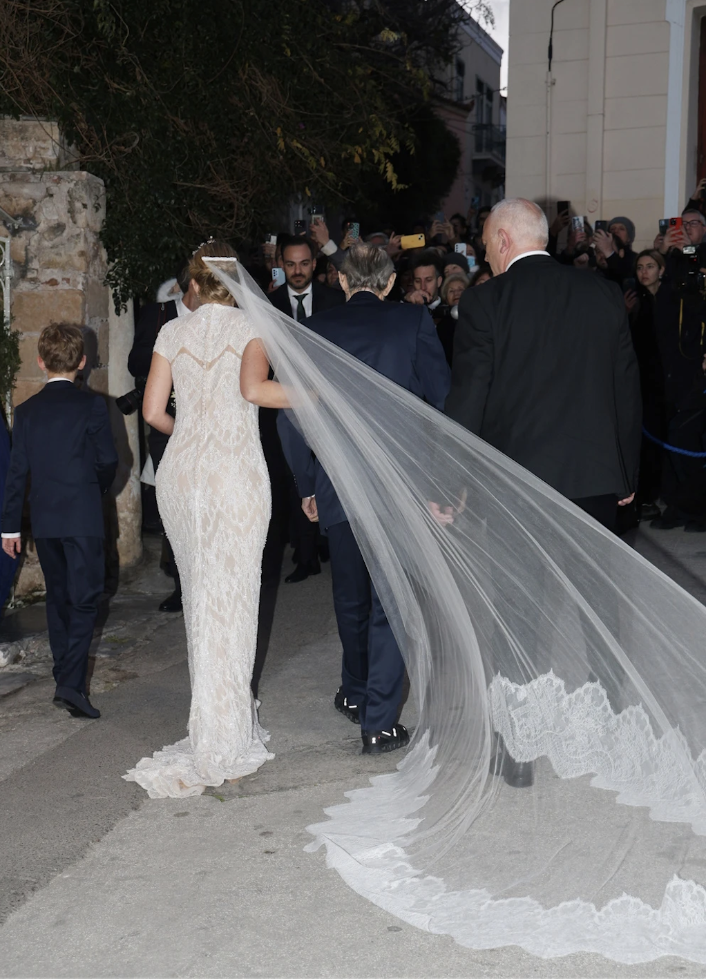 Η νύφη έφτασε στον Ιερό Ναό Αγίου Νικολάου Ραγκαβά στην Πλάκα, συνοδευόμενη από τον πατέρα της, Γιώργο Βαρδινογιάννη. Ο γαμπρός είχε προηγηθεί, φτάνοντας λίγο νωρίτερα στην εκκλησία μαζί με τη μητέρα του, Άννα Μαρία.
