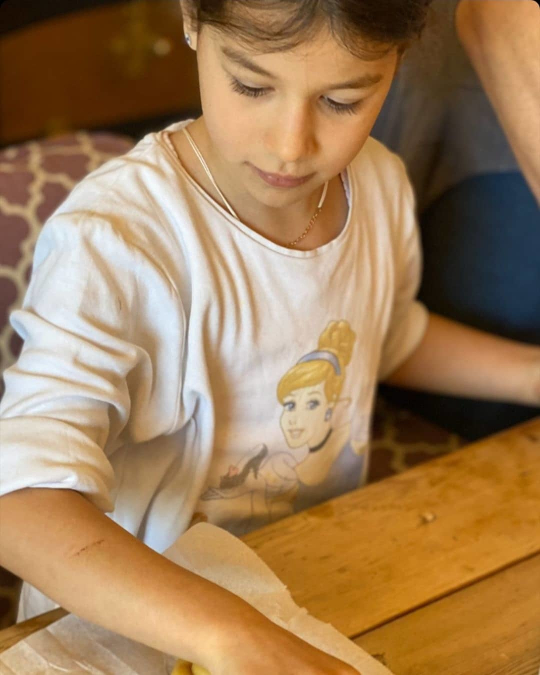 Η Κάτια Ζυγούλη δεν συμμετείχε στην διαδικασία και άφησε τις κόρες της και τον μπαμπά τους να φτιάξουν το παραδοσιακό πασχαλινό έδεσμα για την οικογένεια. Όπως θα δείτε και στις εικόνες που ακολουθούν, τα παιδιά δείχνουν να απολαμβάνουν την διαδικασία με την καρδιά τους.