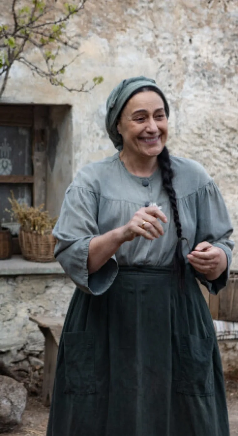 «Είναι μάνα, που σημαίνει ότι είναι εκεί πάντα για την οικογένειά της. Και όχι μόνο. Πηγαίνει στα χωράφια, φροντίζει τα ζώα, μαγειρεύει, καθαρίζει το σπίτι, κάνει όλες τις δουλειές. Είναι μια τεράστια αγκαλιά για το παιδί της. Τον λατρεύει, θέλει να προκόψει. Προσπαθεί για ότι καλύτερο για εκείνον. Και βλέπει ότι έχει προσόντα και αυτό την κάνει να ονειρεύεται ότι θα πάει μπροστά, ότι θα έχει καλύτερη τύχη. Κάνει κομπόδεμα, για να μπορεί να ανοίξει το δικό του μαγαζί και νοιώθει ότι το μέλλον του θα σταθεί γενναιόδωρο. Είναι αγνή γυναίκα, δε βλέπει μπροστά της το κακό. Μόνο να προσφέρει θέλει. Και πιστεύει, ότι όλα θα πάνε καλά».