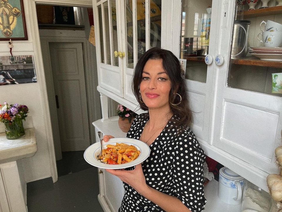 Η υπέροχη κουζίνα στην οποία μαγειρεύει πολύ συχνά τις αγαπημένες της ιταλικές γεύσεις, είναι λευκή ενώ κάποια κάδρα αναβαθμίζουν το χώρο, προσθέτοντας χρώμα.