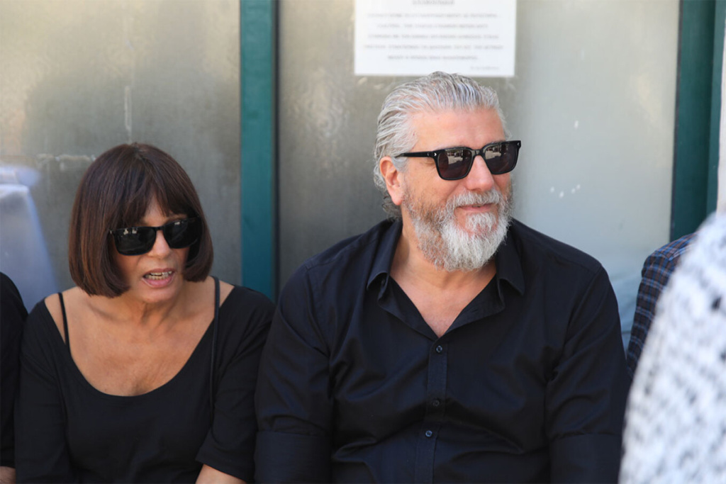 Από τους πρώτους, στο νεκροταφείο έφτασαν η Ελένη Ράντου, ο Σταμάτης Φασουλής και ο Βλαδίμηρος Κυριακίδης με τη σύζυγό του, Έφη Μουρίκη.