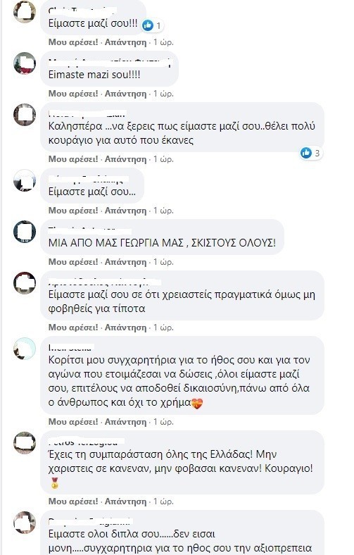 Αμέσως μόλις έγιναν γνωστά τα στοιχεία της, το κύμα συμπαράστασης και αλληλεγγύης στην 24χρονη, που όλες αυτές τις μέρες εκφραζόταν ποικιλοτρόπως στα social media, «γιγαντώθηκε» ακόμη περισσότερο και ορισμένοι έσπευσαν στον προσωπικό λογαριασμό της 24χρονης στο Facebook για να πουν έναν καλό λόγο και να δηλώσουν την στήριξή τους στη Γεωργία.