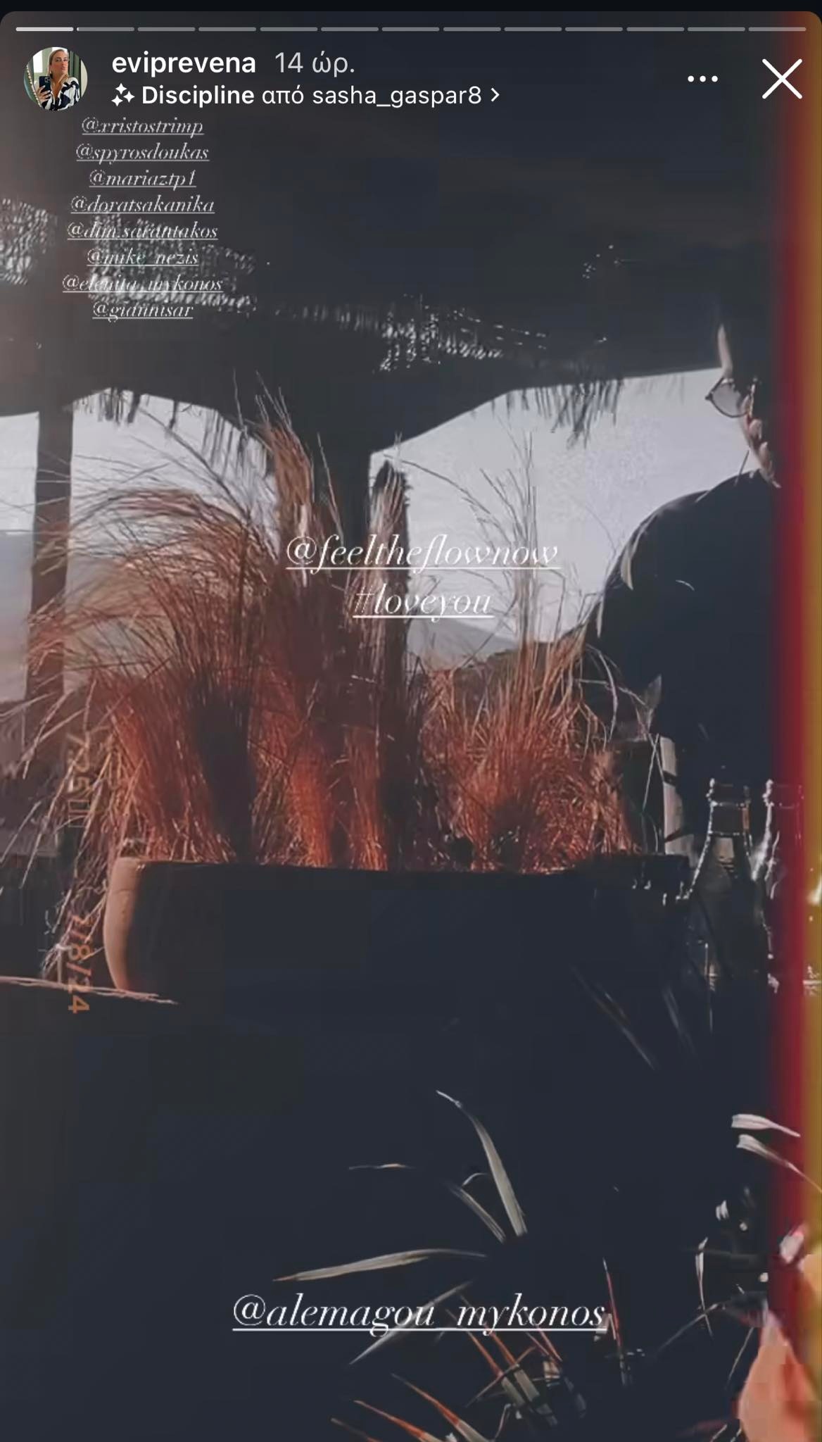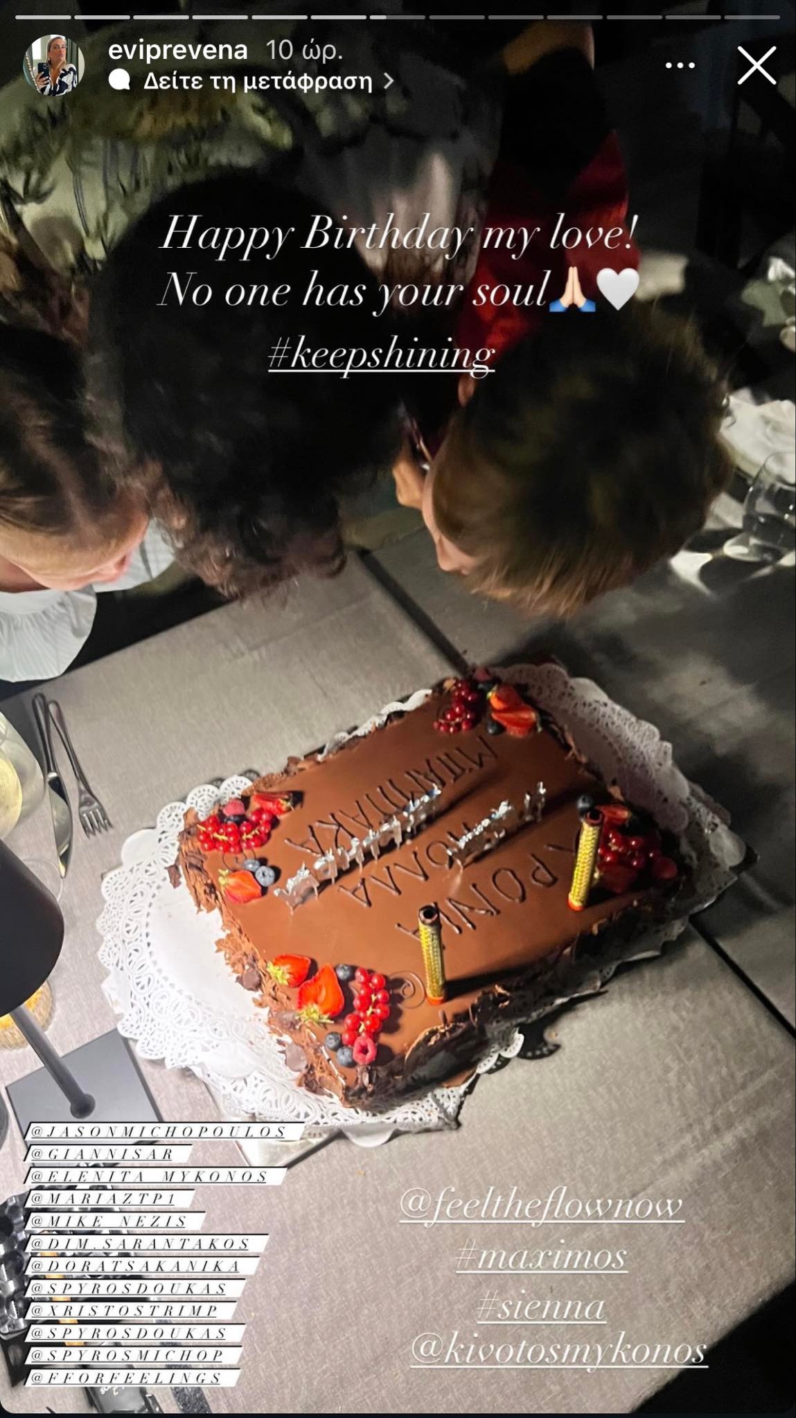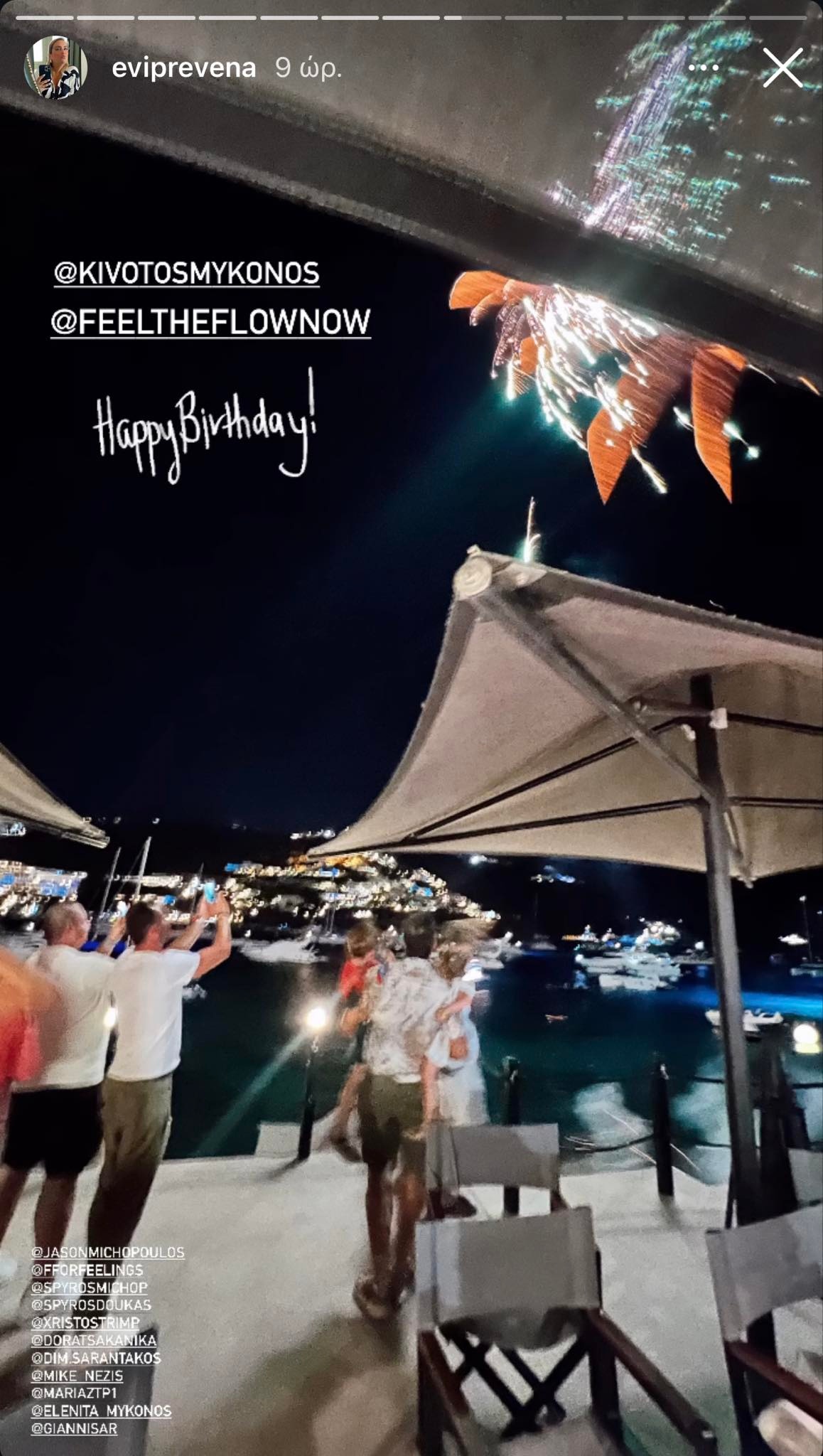 Η Εύη Πρεβενά αναδημοσίευσε μια σειρά φωτογραφιών από το πάρτι του και μάλιστα, η παρέα συνέχισε τη διασκέδασή της και σε άλλα γνωστά μαγαζιά του νησιού.
