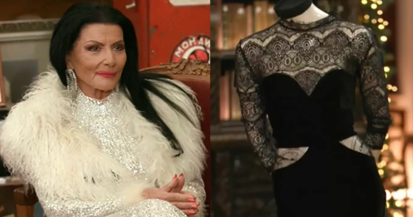 Η Ζωζώ Σαπουντζάκη έθεσε προς πλειστηριασμό μία μαύρη τουαλέτα από βελούδο και δαντέλα, την οποία φόρεσε πριν χρόνια στο θέατρο.