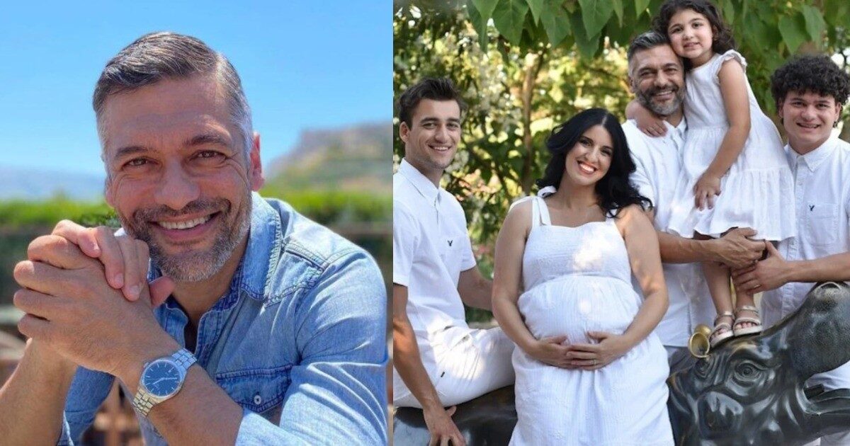 Ο Στέλιος Κρητικός φωτογραφίζεται με τη σύζυγο και τα τέσσερα παιδιά του