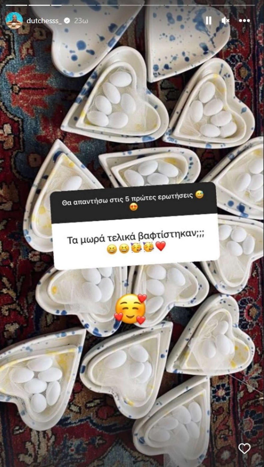 Η είδηση αρχικά έγινε γνωστή μέσα από ένα Q&A που έκανε η Δούκισσα Νομικού στον προσωπικό της λογαριασμό στο instagram όταν κάποιος από τους follower της την ρώτησε αν τελικά βάπτισαν ή όχι τα παιδιά τους. Εκείνη ως απάντηση, δημοσίευσε μια φωτογραφία με μερικές μπομπονιέρες χωρίς όμως να διευκρινίζει αν οι βαπτίσεις έγιναν ή αν προετοιμάζονται γι΄αυτές.