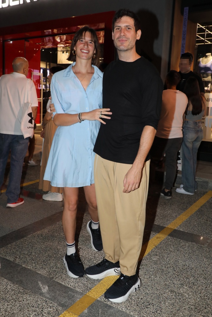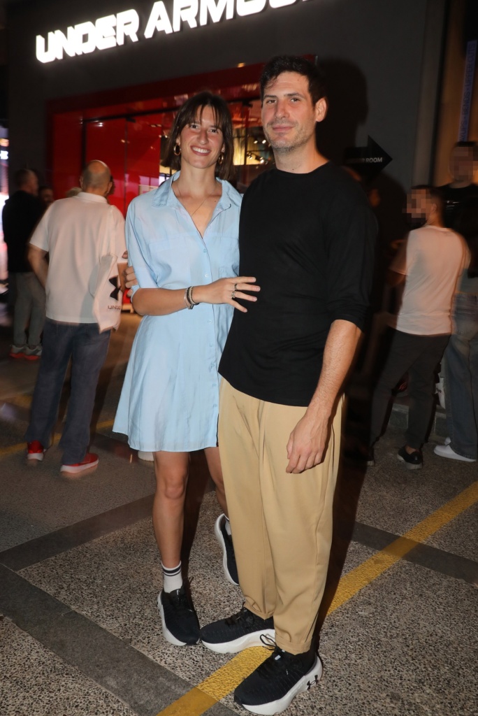 Ο Θανάσης Πατριαρχέας φορούσε ένα μπεζ μπαντελόνι με μαύρο t-shirt και μαύρα sneakers, ενώ δίπλα του η σύζυγός του, Βίβιαν Δράκου έδειχνε στιλάτη με ένα shirt dress σε baby blue απόχρωση και χρυσούς κρίκους, ενώ ολοκλήρωσε το look με μαύρα sneakers και λευκές κάλτσες, συνθέτοντας ένα casual chic look.