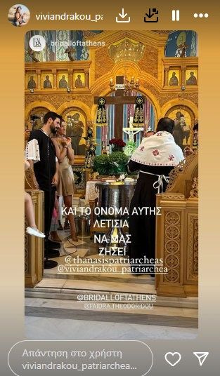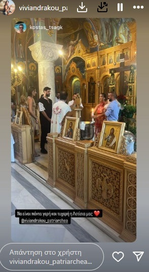 Η νεοφώτιστη ονομάστηκε Λετίσια, ενώ υπενθυμίζεται ότι το ζευγάρι έχει αποκτήσει άλλες δύο κόρες, την 4χρονη Σταύρια και την 3χρονη Κύνθια.